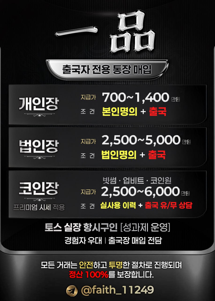 일품장집 출국전용 계좌매입