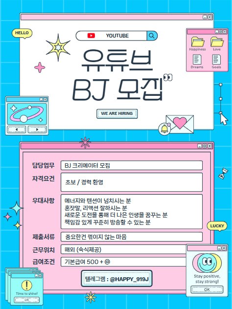 ❤️❤️ 텔레그램 문의 : @happy_919j ❤️❤️SA계열과 함께할 유능한 ❤️YouTube BJ 모집