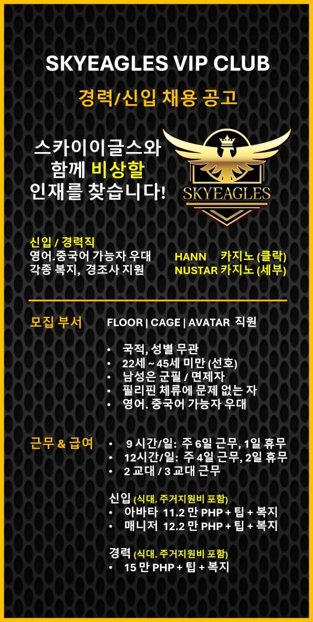 SKYEAGLES VIP CLUB에 동반 성장할 직원을 모집합니다